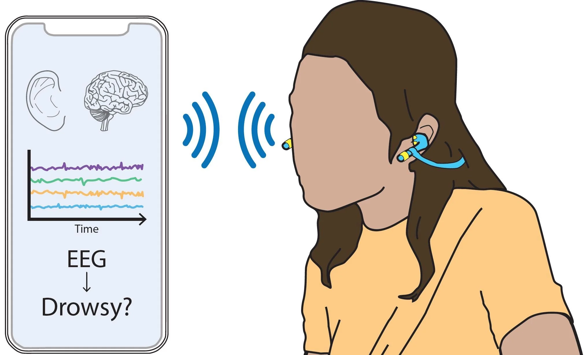 Abstract: Drowsiness monitoring can reduce workplace and driving accidents. To enable a discreet device for drowsiness monitoring and detection, this work presents a drowsiness user-study with an in-ear EEG system, which uses two user-generic, dry electrode earpieces and a wireless interface for streaming data. Twenty-one drowsiness trials were recorded across five human users and drowsiness detection was implemented with three classifier models: logistic regression, support vector machine (SVM), and random forest. To estimate drowsiness detection performance across usage scenarios, these classifiers were validated with user-specific, leave-one-trial-out, and leave-one-user-out training. To our knowledge, this is the first wireless, multi-channel, dry electrode in-ear EEG to be used for drowsiness monitoring. With user-specific training, a SVM achieved a detection accuracy of 95.9%. When evaluating a never-before-seen user, a similar SVM achieved a 94.5% accuracy, comparable to the best performing state-of-the-art wet electrode in-ear and scalp EEG systems.