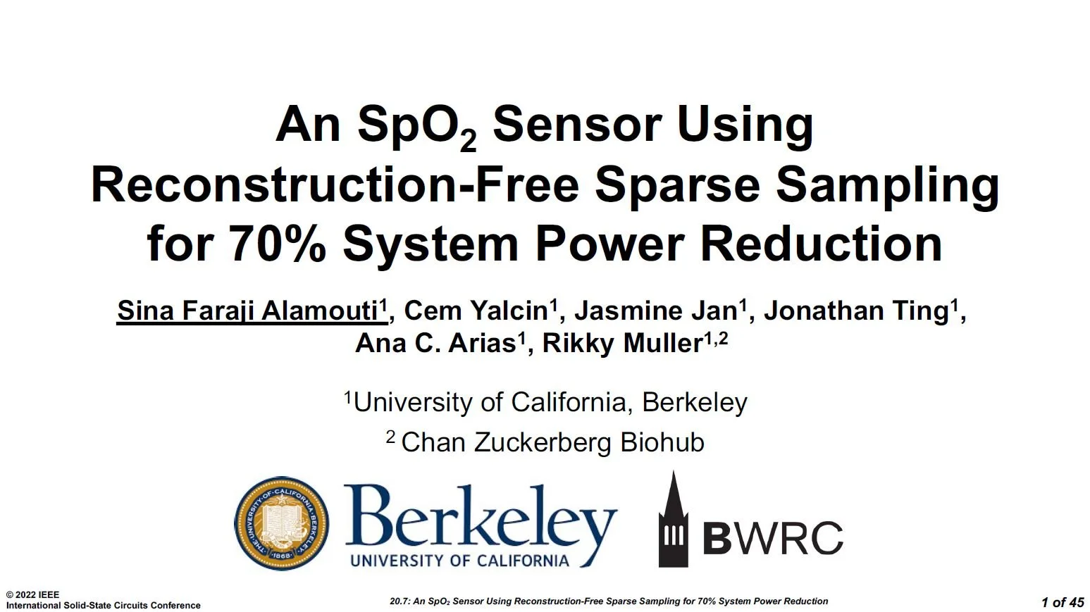 Sina Faraji Alamouti presented a paper (20.7) at the 2022 International Solid-State Circuits Conference on “An SpO2 Sensor Using Reconstruction-Free Sparse Sampling for 70% System Power Reduction”. The presentation was delivered as part of the session on “Body and Brain Interfaces”, with the live Q&A held on Feb 23, 9:30-9:40 am PST. Read the paper here.